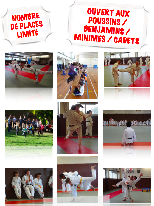 Ce stage s'adresse aux Poussins, Benjamins, Minimes et Cadets. Les techniques seront adaptées en fonction des tranches d'âges.